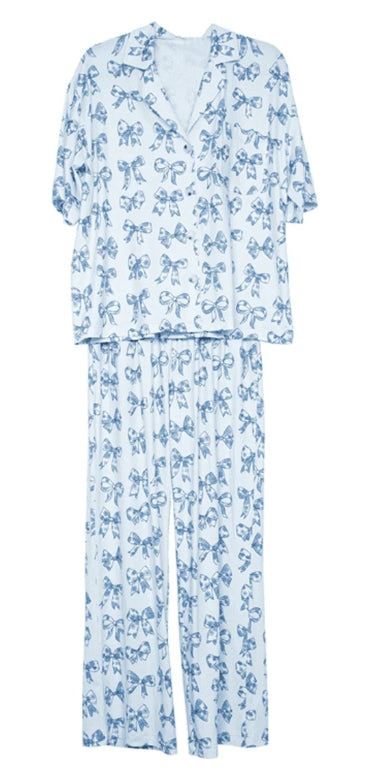 Whether you're lounging around the house, journaling with your favorite latte, or planning a movie night with your girls, these bow pajamas are made for slow, sweet moments. It's the kind of set that looks just as good in your mirror selfies as it feels wrapped around you.